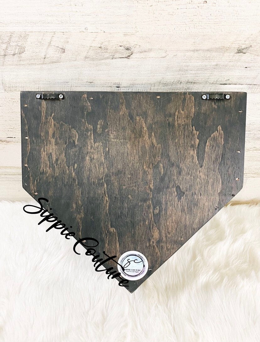 Made of all wood and comes in two sizes: actual home plate size 17x17x 3.5 or Large 24x24x3.5. *See alternate listing for Large case listed under "LARGE Display Case Ring and/or Game ball"