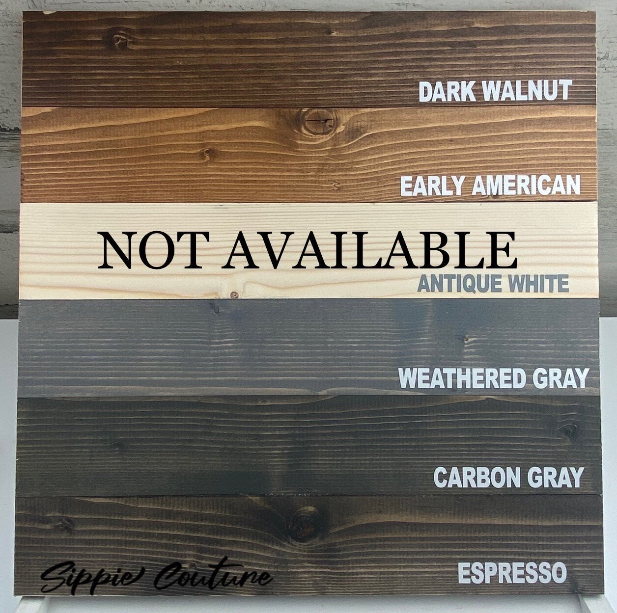 Available in five different stains. **Please note; the finish is not a solid colored paint, woodgrain will show through the stain.